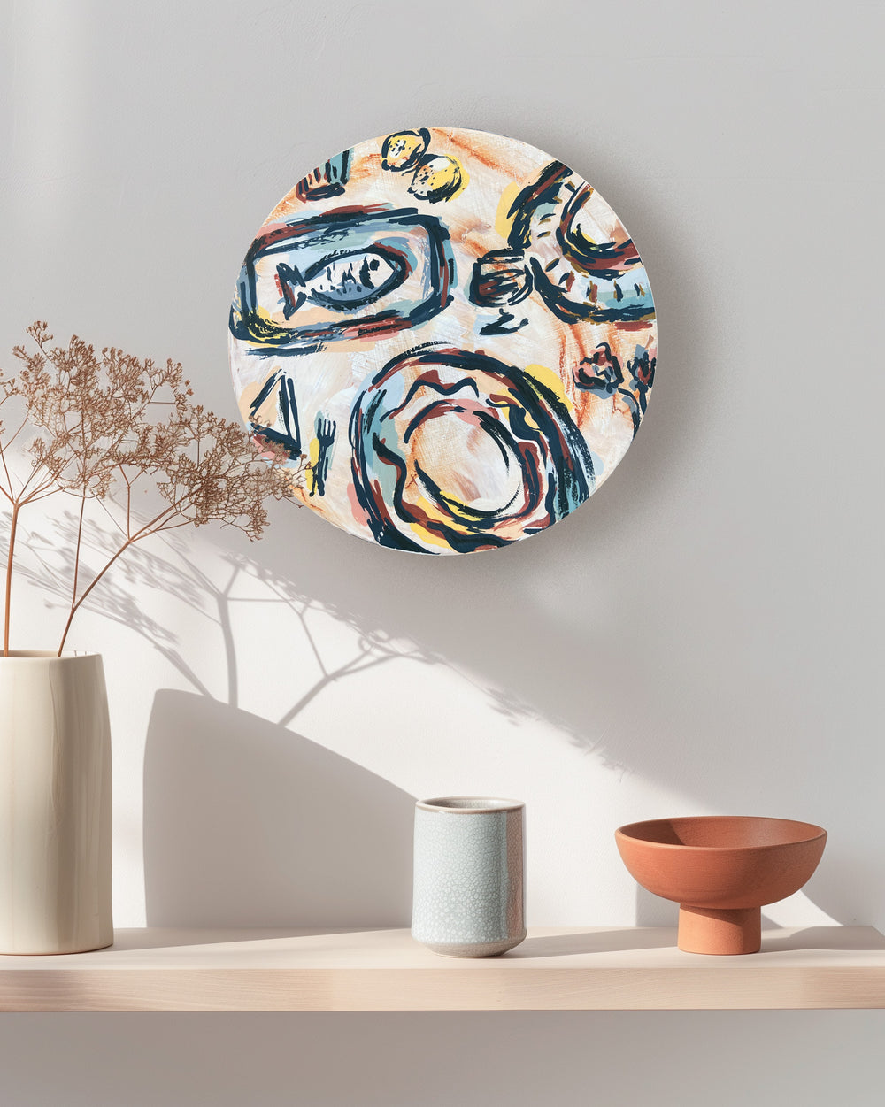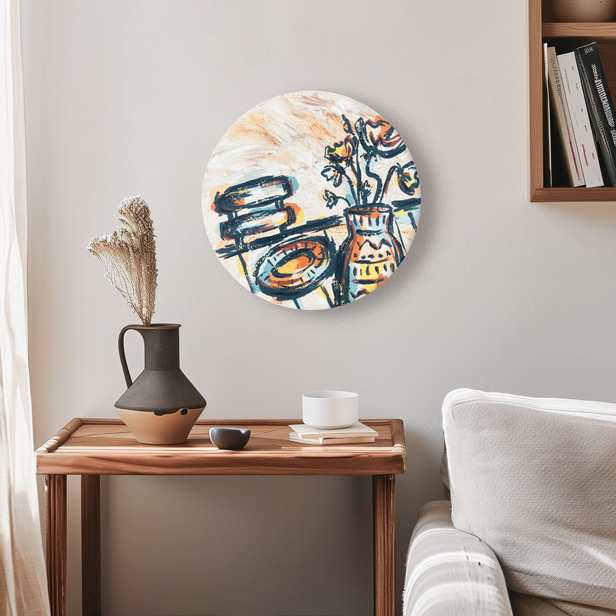 The colour palette consists of warm terracotta, buttery yellow, mossy greens and highlights of rich red oxide.